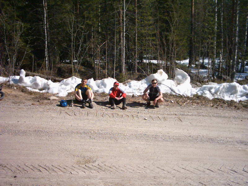 "комаров.нет!". Щелкнулись в летнем на фоне снега :))) Покатили дальше. Лезем в