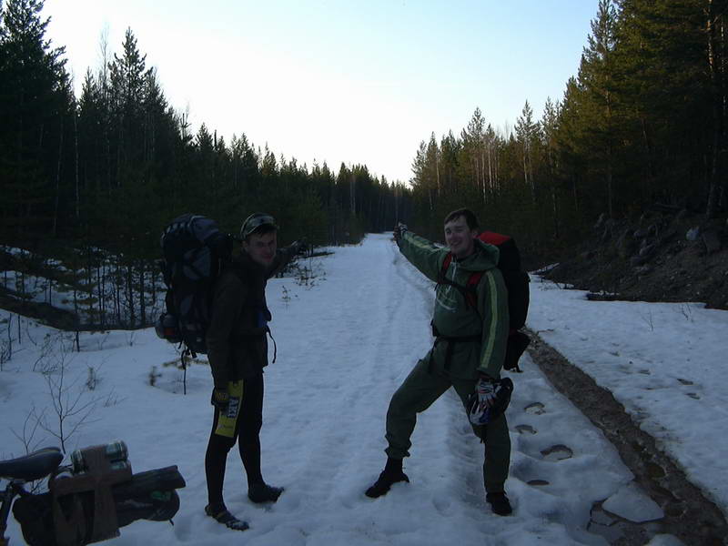 теплое, так как уже стало холодать, и проехали километр до снега. Дорога не